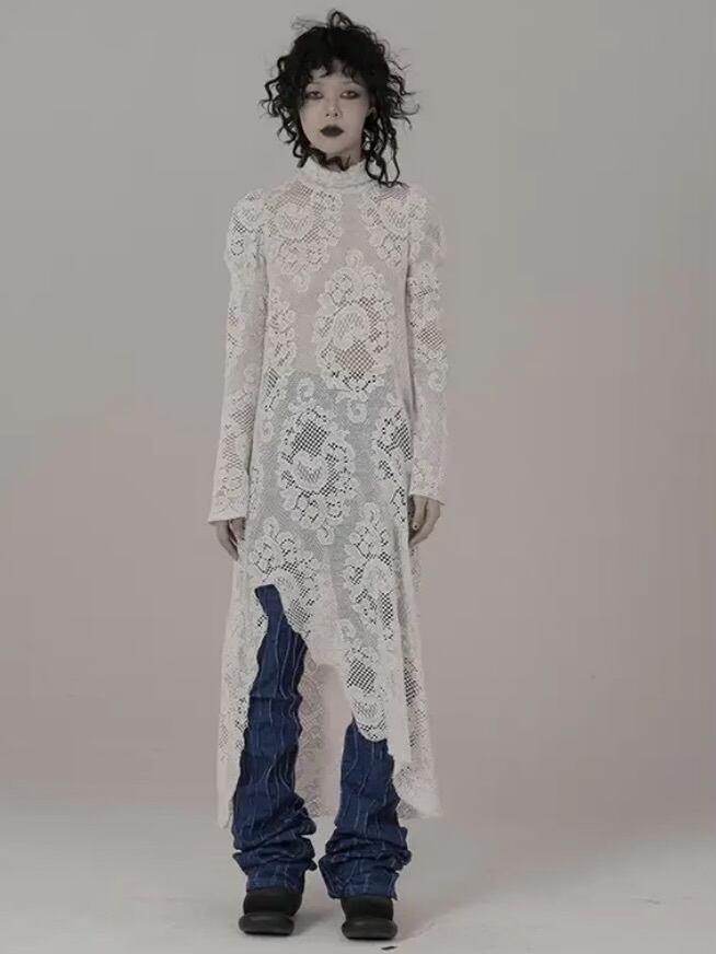 ロックテイスト溢れるゴシックレースドレス。上品で大人っぽい雰囲気が漂うハイネックトップスは、レースとコットン素材を使用したナチュラルなデザイン。一枚で着るだけで主役になれる、ワンピースとしても使用できます。